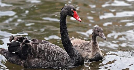 흑고니는 다른 고니류에 비해 울음소리를 잘 내지 않는다고 하는데, 단 화가 났을 때에는 시끄럽게 '쉿쉿' 소리를 낸다더라고요. 흑고니의 부리는 붉은색에 가까운 오렌지색이며, 검은색 혹이 있어요.
