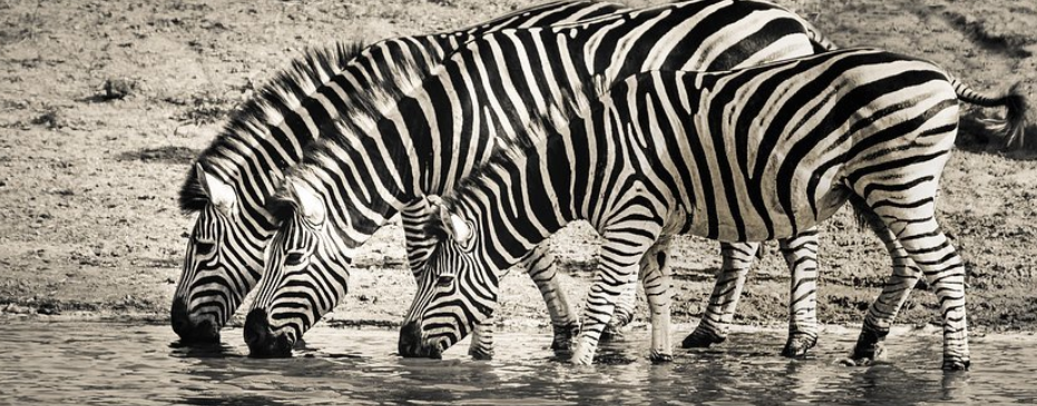 얼룩말은 뭉쳐 있으면 무늬가 섞여서 사자나 표범이 정확히 볼 수 없다고 해요. 멀리서 보면 얼핏 커다란 동물 같아 보이기도 하고, 무리 수를 짐작하기가 어렵기 때문에 포식자의 공격을 막을 수 있습니다.